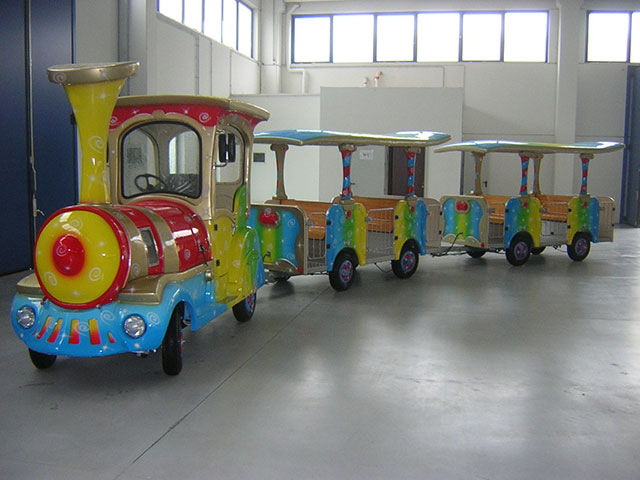 Équipé d'un moteur électrique, ce petit train est une alternative propre et silencieuse et est particulièrement indiqué pour les lieux couverts et bondés tels que les outlets et les centres commerciaux. Compact et vaste à la fois, il est doté de wagons de 8 places et d'un système audio de série.